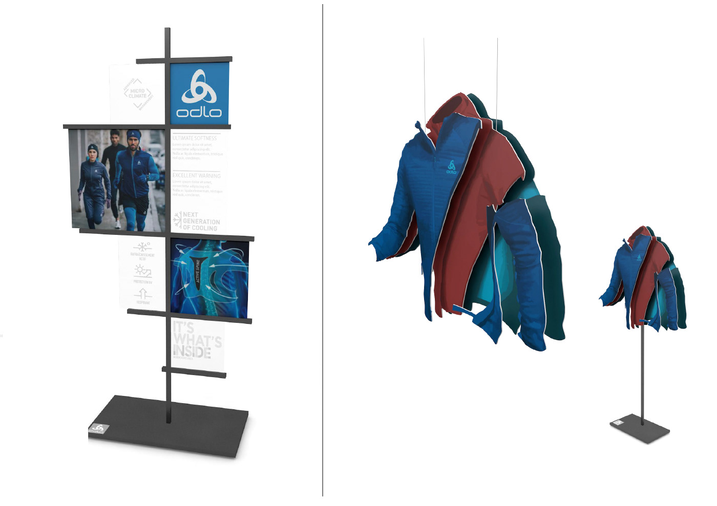 Conception de vitrines pour les boutique d'Oldlo, saison FW19. Designs en adéquation avec les KV fournis par la marque.